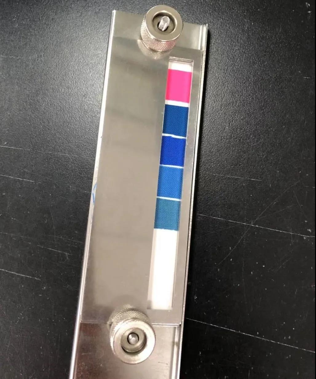 如2019版曝曬直至目標(biāo)藍(lán)色羊毛標(biāo)樣的分段面上第一階段等于變色灰卡4級(jí),即停止曝曬,再遮住第一階段,繼續(xù)曬第二階段,直至目標(biāo)藍(lán)色羊毛標(biāo)樣等于變色灰卡3級(jí),停止曝曬。如下圖:
